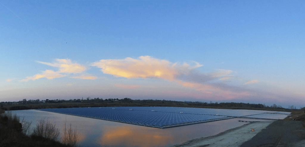 Großes schwimmendes Photovoltaik-Kraftwerk mit Absenkungsfläche